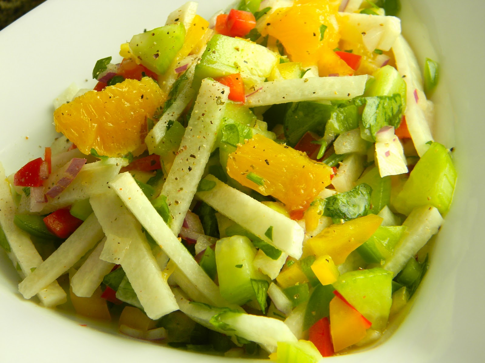 Paired with jĂcama, it adds up to a simple salad that's easy enough for every day and festive enough for fall holiday menus. Toss to coat thoroughly, then pile salad onto. Place in a large bowl of very cold water. This fennel and orange salad is super tasty and very refreshing as well. Crunchy jicama, apple, and carrot slaw with creamy orange dressing.